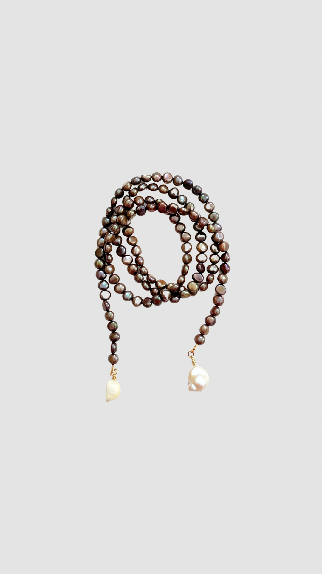 - Freshwater pearls (dyed dark, hand-selected)
